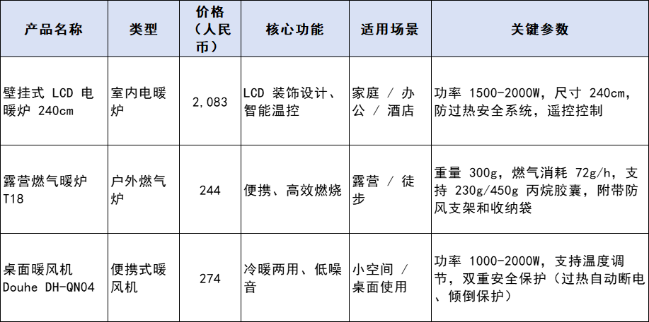 - 中端:暖风机(273.6元)→ 大众市场走量款